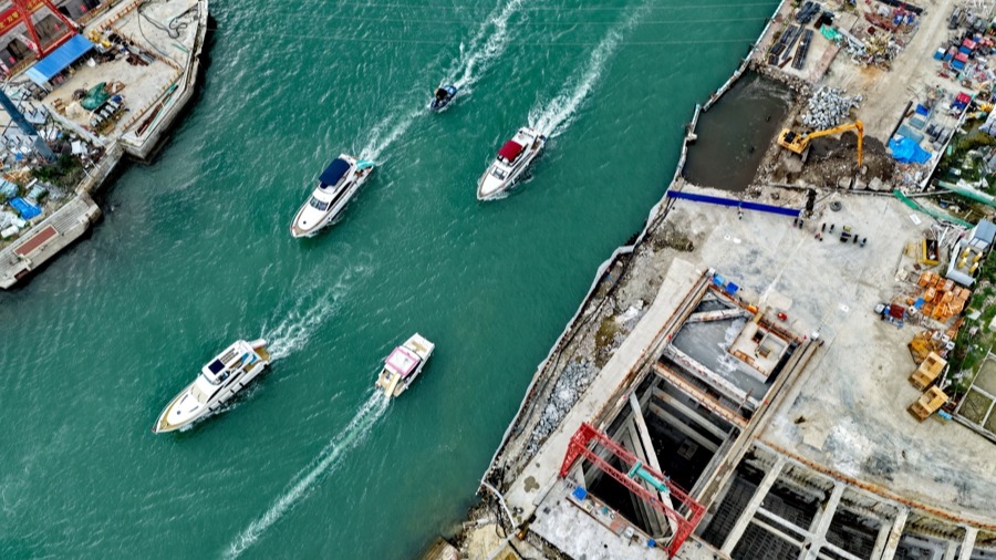 2025年12月5日,游艇从三亚河口通道工程项目上驶过。当天,海南自贸港重点项目——三亚河口通道工程项目顺利完成海底首次贯通。该项工程建成后,将打通三亚河口两岸的交通瓶颈,实现片区通行时间从30分钟缩短至5分钟以内,进一步优化三亚“东西联动、南北互通”的空间发展格局,为海南自贸港发展提供有利条件。