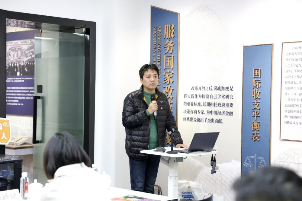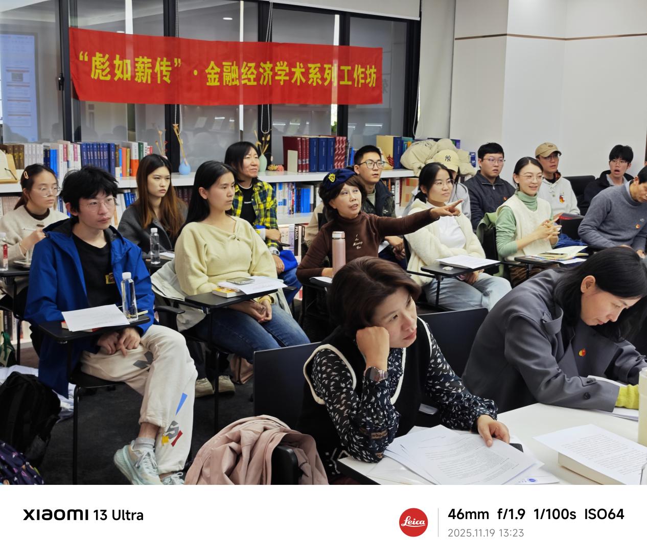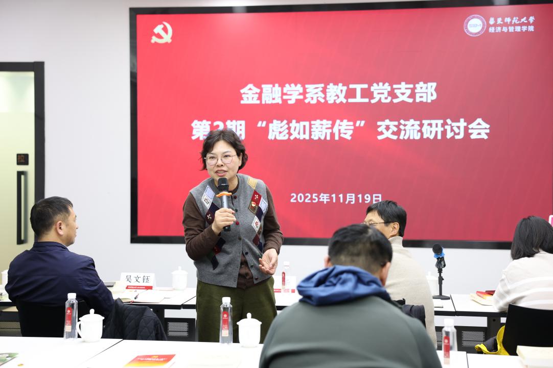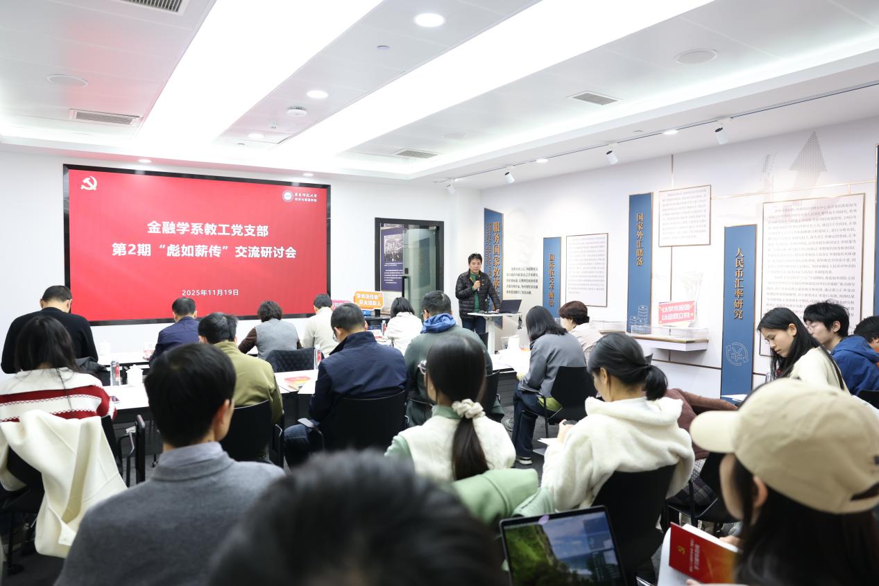 为深入学习贯彻党的二十届四中全会精神、深刻领会习近平经济思想的精髓要义,2025年11月19日下午,经济与管理学院师生党支部以“创新赋能高质量发展”为主题,在陈彪如学术成就陈列室举办第二期“彪如薪传”交流研讨会。学院党委书记岳华、党委副书记吴文钰,金融学系教工党支部、经济学系教工党支部、经济学类硕士研究生党支部、博士研究生党支部党员代表参会。学校国有资产管理处处长、国有资产管理处党支部书记王淑仙,国有资产管理处党支部组织委员李峤峍进行观摩交流。活动由金融学系教工党支部书记金培振主持。