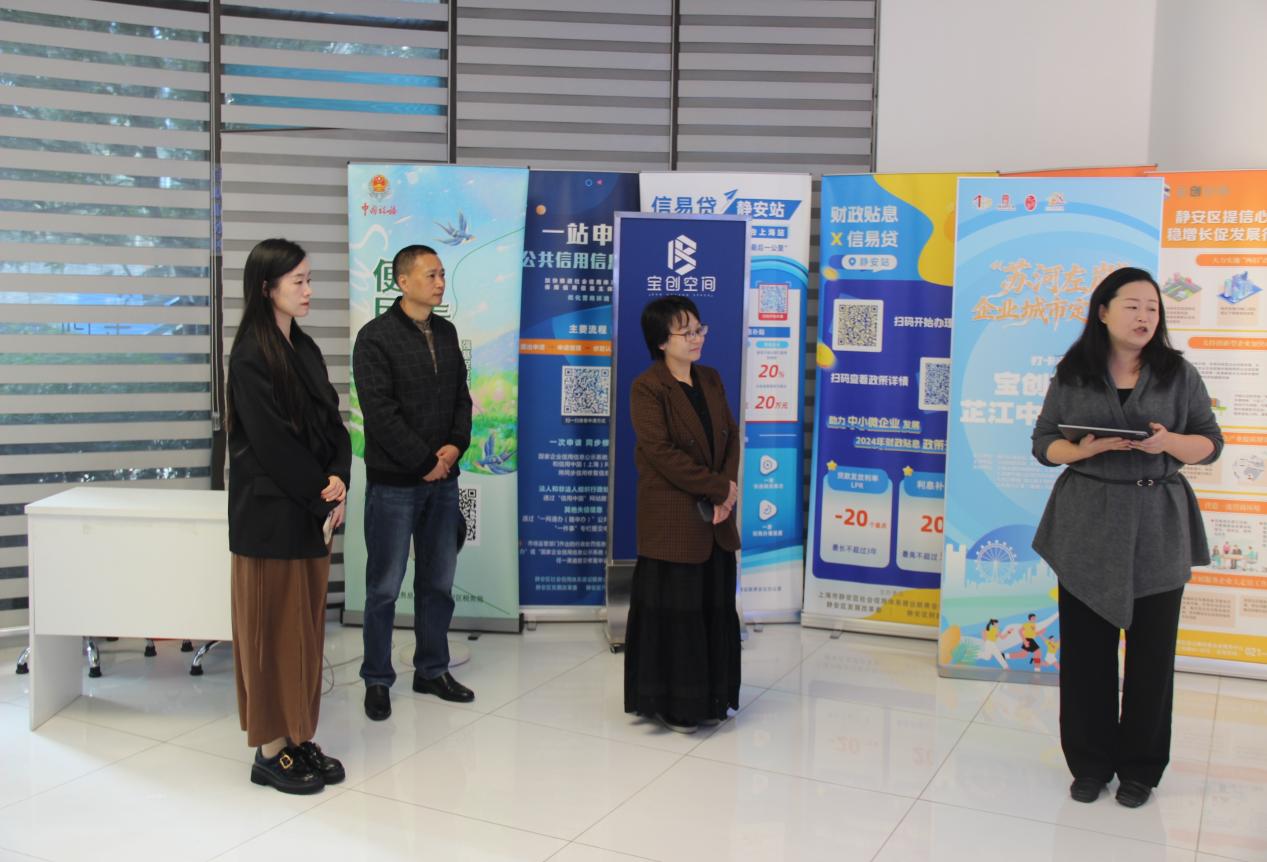 师生一行首先参观了宝山路街道招商服务一体化中心“宝创空间”,了解宝山路街道在优化营商环境、推动创新创业、提供精准化企业服务方面的有力举措与显著成效。