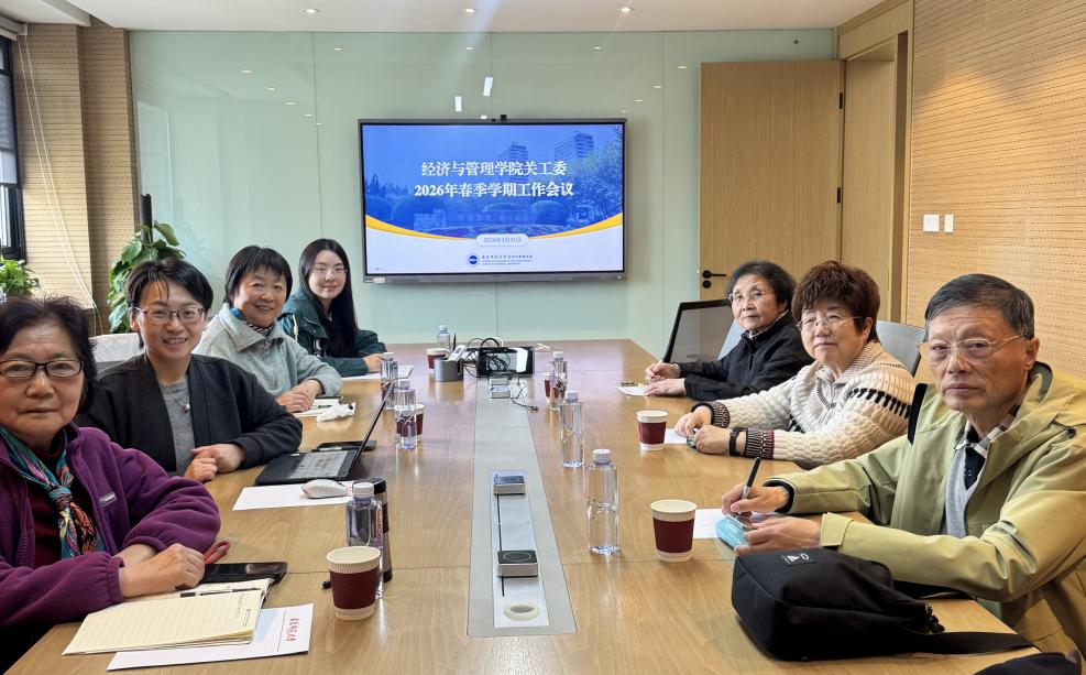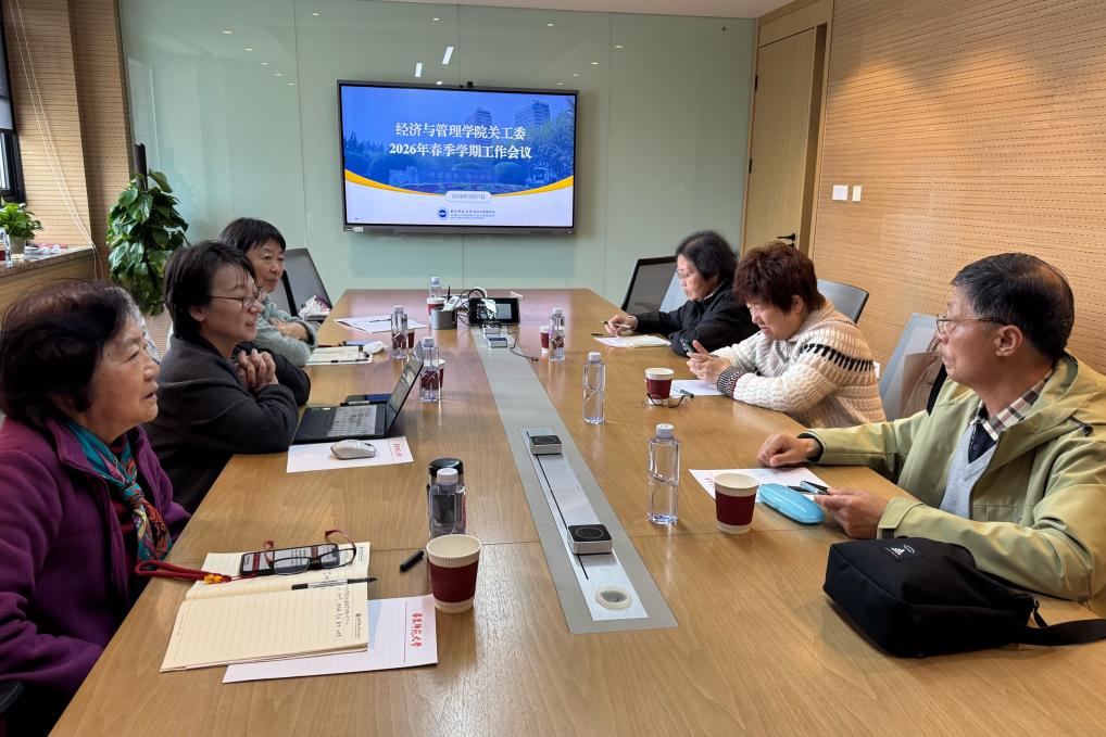 2026年3月31日,华东师范大学经济与管理学院关工委在普陀校区电教楼召开春季学期工作会议。经济与管理学院党委副书记、纪委书记、关工委主任杨艳红,学院关工委副主任徐丽华,学院关工委委员薛跃、孙厚琴、顾志敏、华俊出席。会议由学院关工委秘书长王旭主持。